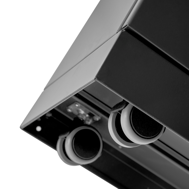 Behind the base are strong hidden wheels, allowing the waste solution to be moved easily.